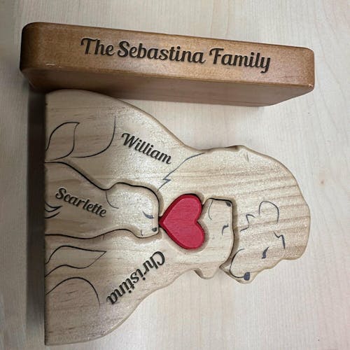 Personalized Lion Wooden Family Puzzle - Wooden Pet Carvings