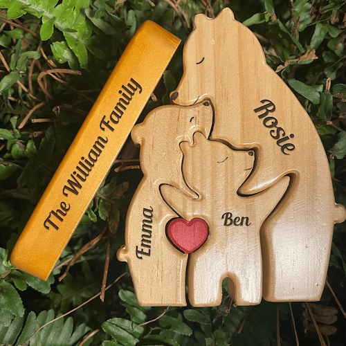 Personalized Wooden Bears Family, Bear Shaped Wood Puzzle with Custom Name- Gift for Mother's Day, Thanksgiving, Christmas