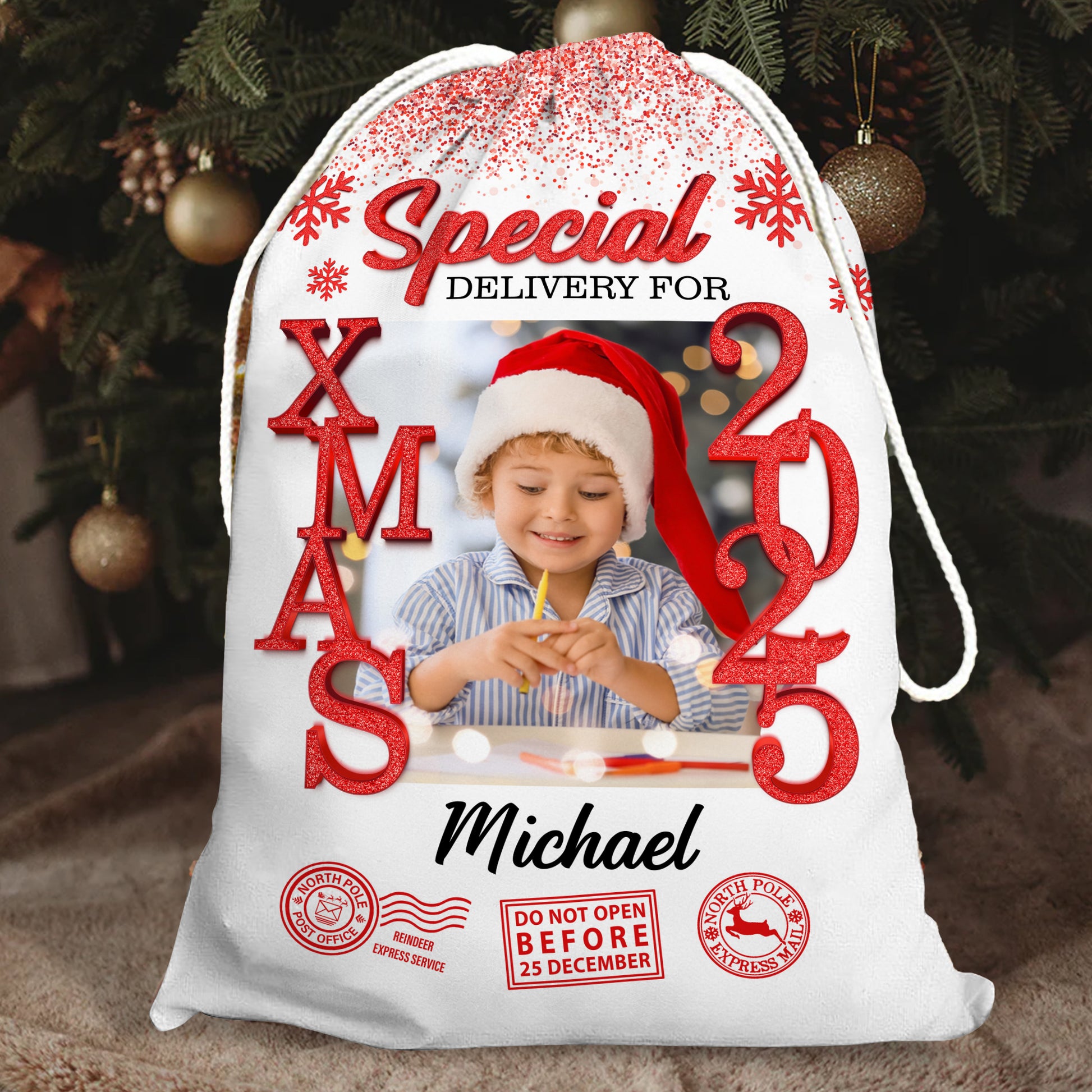 Personalized Glitter Santa Sack - Special Delivery Gift Bag