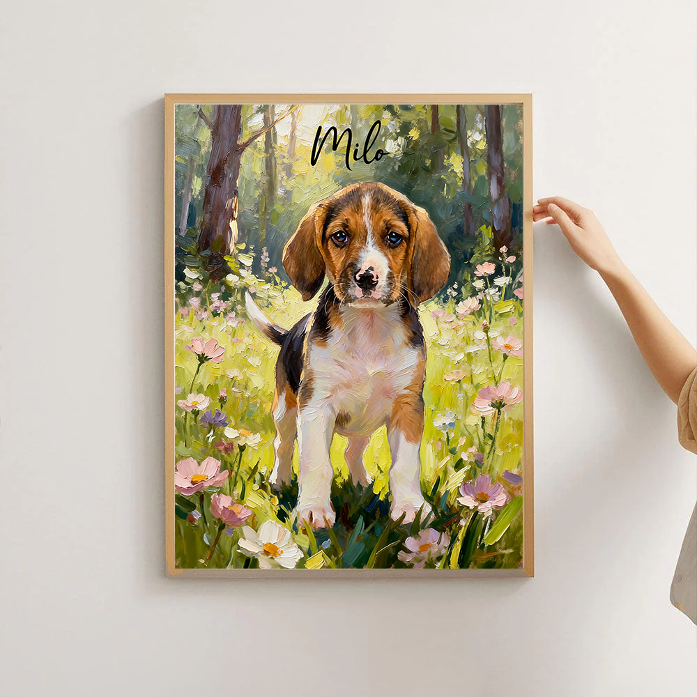 ❤️ Add to Cart and Place Your Order Choose the Material between Canvas and Poster. Upload a photo to create your masterpiece! We offer designs for both male and female pets and multi-pet options.