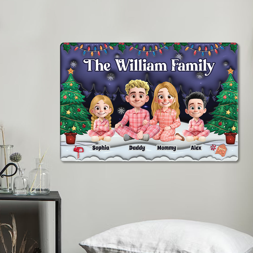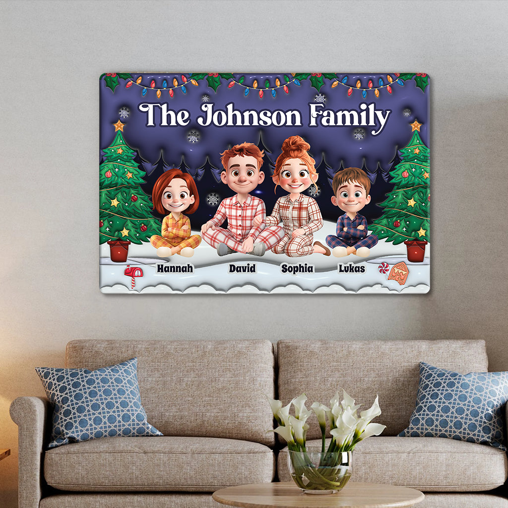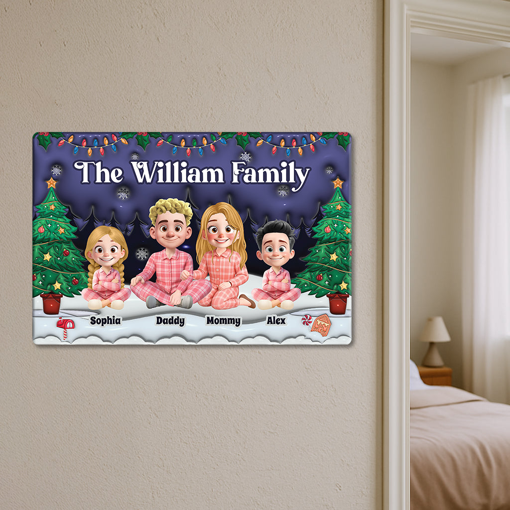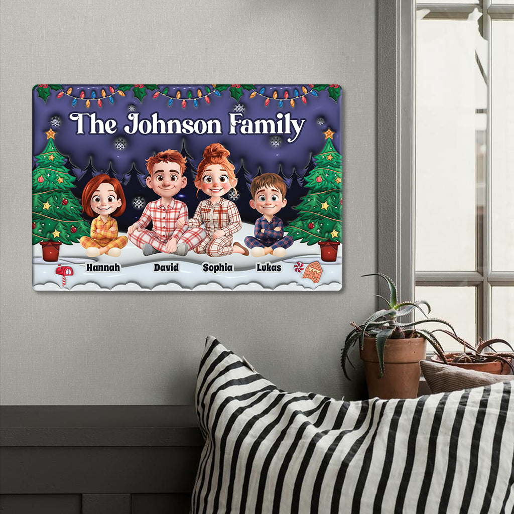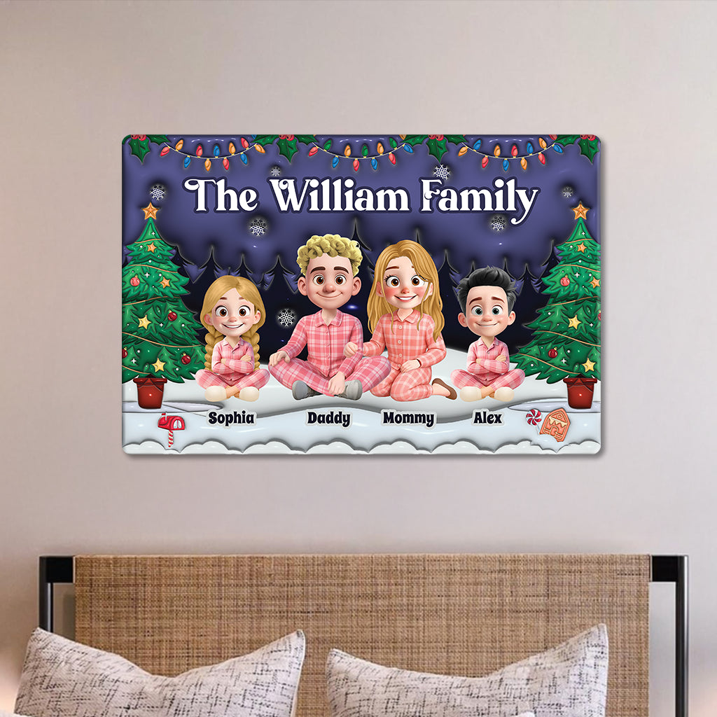 3D Effect Family Christmas - Personalized Custom Metal Sign