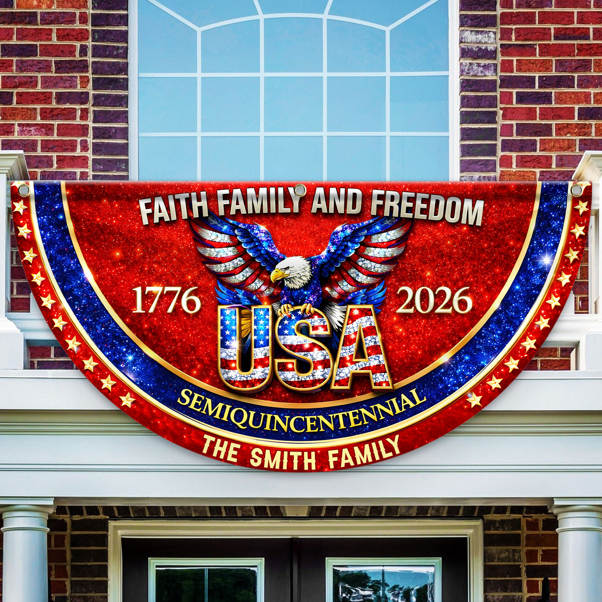 Celebrate America's enduring spirit with this striking 250 Years of Freedom custom family name flag. Personalize it with your family name to create a meaningful tribute that honors the nation's legacy while showcasing your pride.