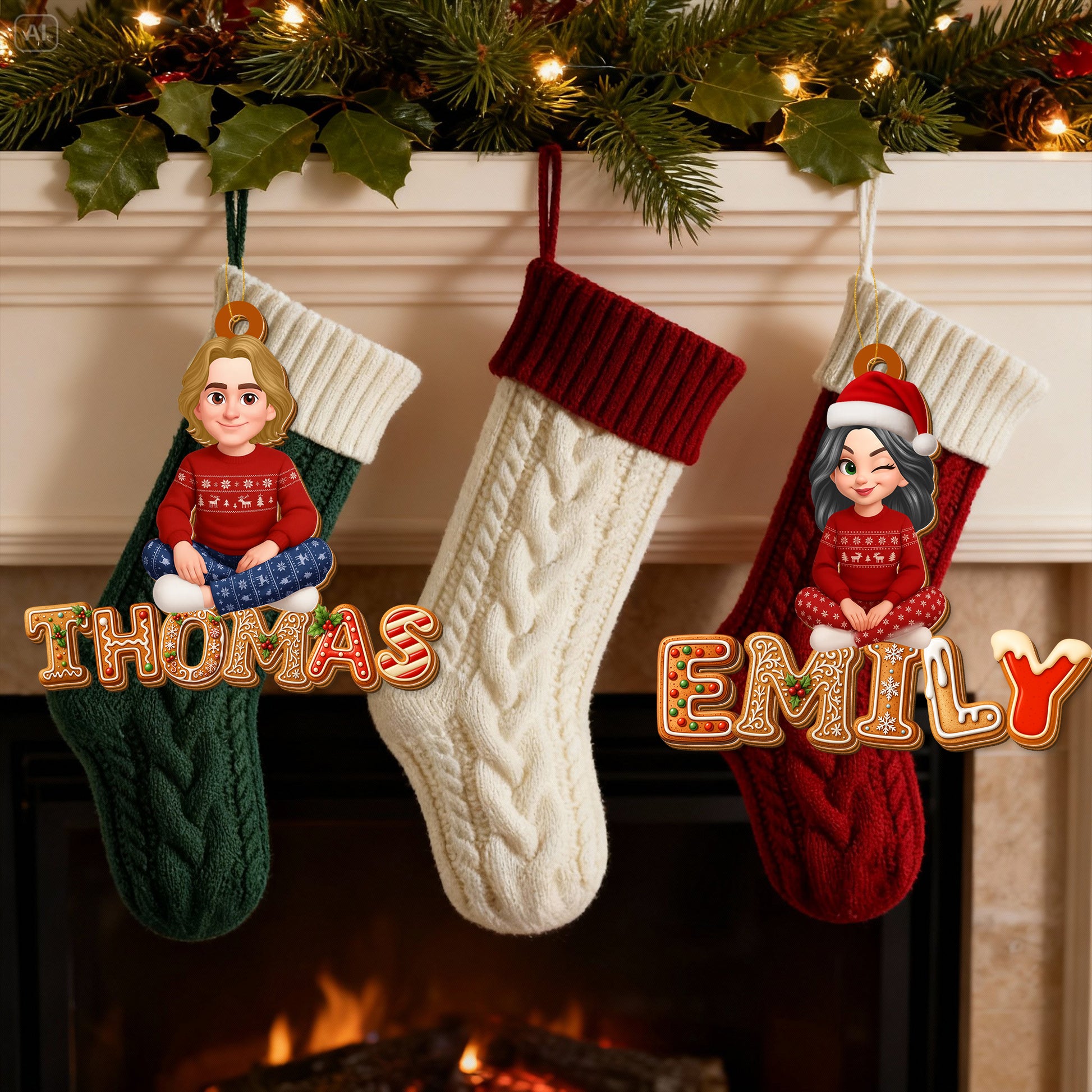 Family Name Christmas Ornament - Wooden Ornament With Christmas Stocking