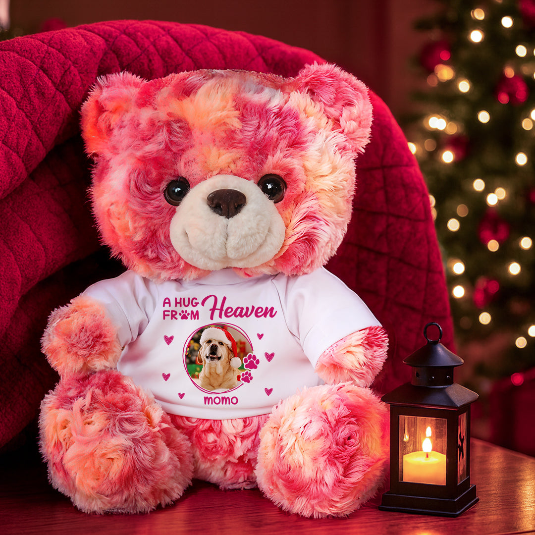 This heartfelt bear, with its photo-customized cotton tee, symbolizes eternal love. Soft and huggable, it comforts all ages as a cherished keepsake, tenderly preserving precious memories of your love story.
