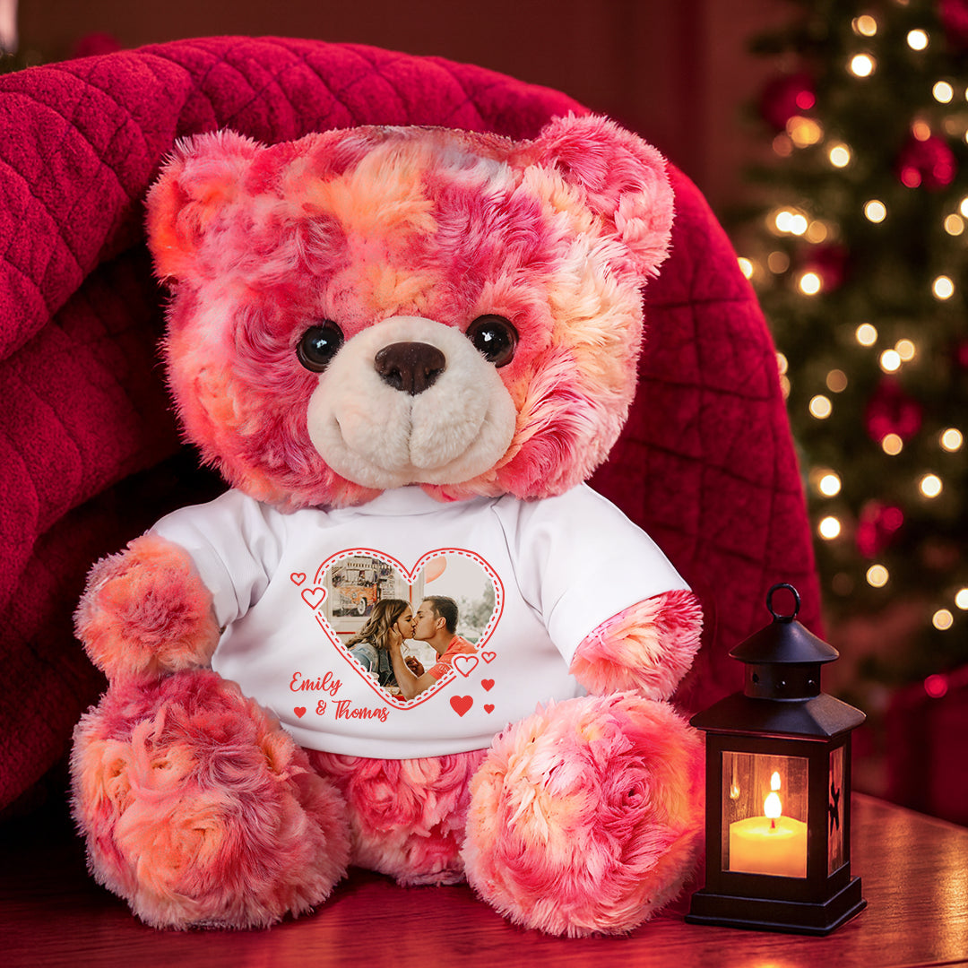 This touching keepsake bear is a sweet symbol of lasting love and connection. The soft cotton T-shirt can be customized with a favorite photo of you and your partner, turning this plush companion into a personal tribute to your shared journey.