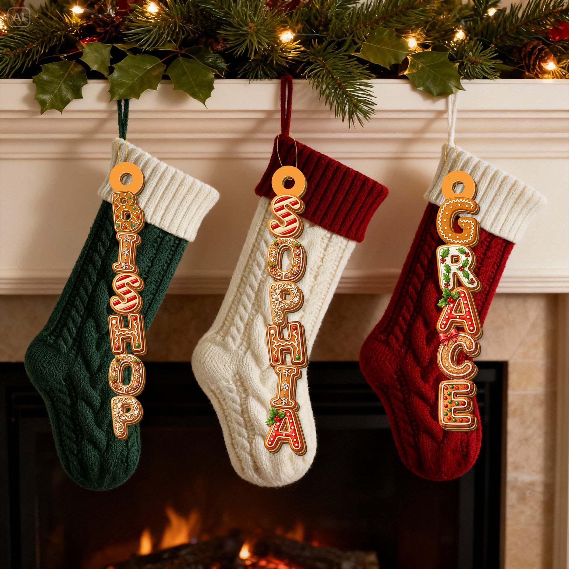 Personalized Letter Name Christmas Ornament, Alphabet Ornament With Christmas Stocking
